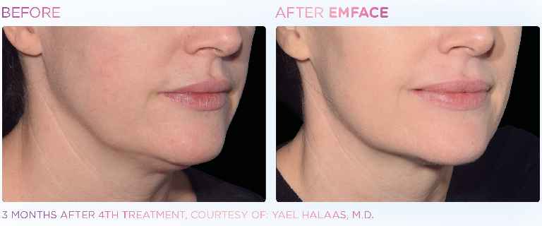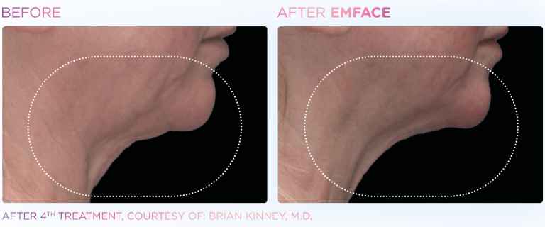 EMFace Submentum is a non-invasive skin-tightening treatment for the submental area. It lifts and firms the area beneath the jaw, reducing the appearance of a double chin. It does this without any incisions and leaves no scars behind.